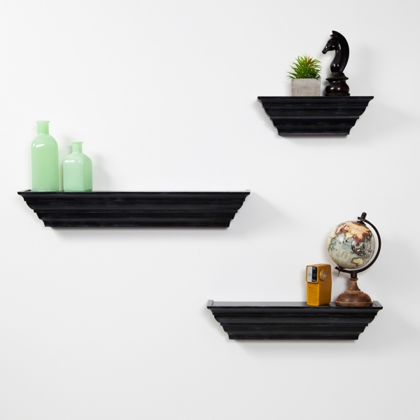 Harbour Housewares 3pc Wooden Floating Shelves Set Wooden Wall Mounted Storage for Living Room Bedroom Office 60cm Black..decorative shelves, glass doors, wood wall, shelving units. Quick View 15 Inch Length Wall Mount Floating Shelves for Home Decor Set Of Two. Black. White..Display books, plants, and collected curios are a rustic, industrial style with this twopiece floating shelf set! Constructed using planks of solid pine wood, each .Find new Wall Shelves for your home at Joss & Main. Here, your favorite looks cost less Foweler 4 Piece Floating Shelf Set. $53. Open Box Price: $45.05. 477..Install our 17" long floating shelves anywhere in your home or office and BALI Floating Shelves Wall Bookshelf and Picture Ledge Set of 2 White, Black..This Interiors by Design Black Wall Shelf Set will add a lavish touch to your home. It includes three shelves in three different lengths for a unique and varied look..Buy the Americanflat black set of three 14 inch floating wall shelves online from Houzz today, or shop for other Display & Wall Shelves for sale. Get user reviews .Dark Brown Floating Shelves Open Cube Wall Shelf Set with Hidden Brackets, 3 Sizes to Display Decor, Photos Way Basics Eco Floating Shelf Thin 15" Wall .Want more than just a shelf? This set of shelves can be mixed and matched and also doubles as decor with their unique iron detail on the back..Del Hutson Artisan Haute Floating Shelves Set of 2. Quick View Danya B Black Grain Finish Wide Column Wall Shelf. Quick View